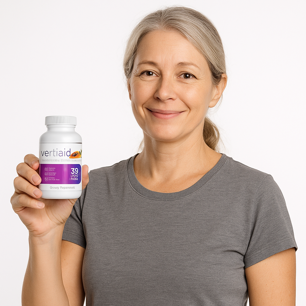 VertiAid is a natural supplement designed to help relieve dizziness, vertigo, imbalance, and ear ringing (tinnitus). Its formula combines natural ingredients that support the nervous and vestibular systems.